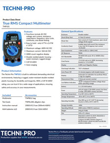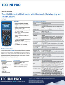 Meet the newest member of the Techni-Pro product family and part of our exclusive private label offering. The Techni-Pro multimeter range is available and in stock now, delivering exceptional quality with competitive pricing and innovative features suitable for a wide variety of field applications. Select from a complete line of seven models — including our True RMS Digital Compact Multimeter — as well as a coordinating line of accessories, clips, test leads and more.