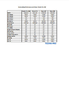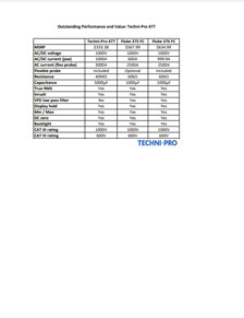 The Techni-Pro 477 offers a high level of performance, combined with significant savings. The chart below outlines a brief comparison of the Techni-Pro 477 and other popular clamp meters.